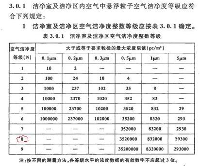 各種等級包括10萬級凈化車間潔凈度標準參考如下: