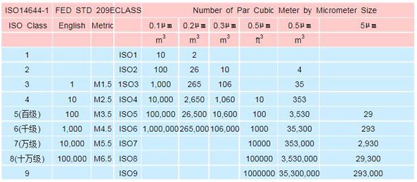 空氣無塵車間潔凈度分級標(biāo)準(zhǔn):ISO14644-1(國際標(biāo)準(zhǔn))